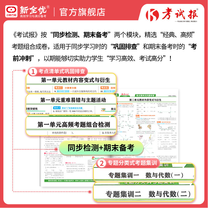 淘宝2025新版新全优同步检测高频题考试报一二三四五六年级上册语文数学英语人教版全套小学课本同步试卷测试卷少年素质教育报学习计划