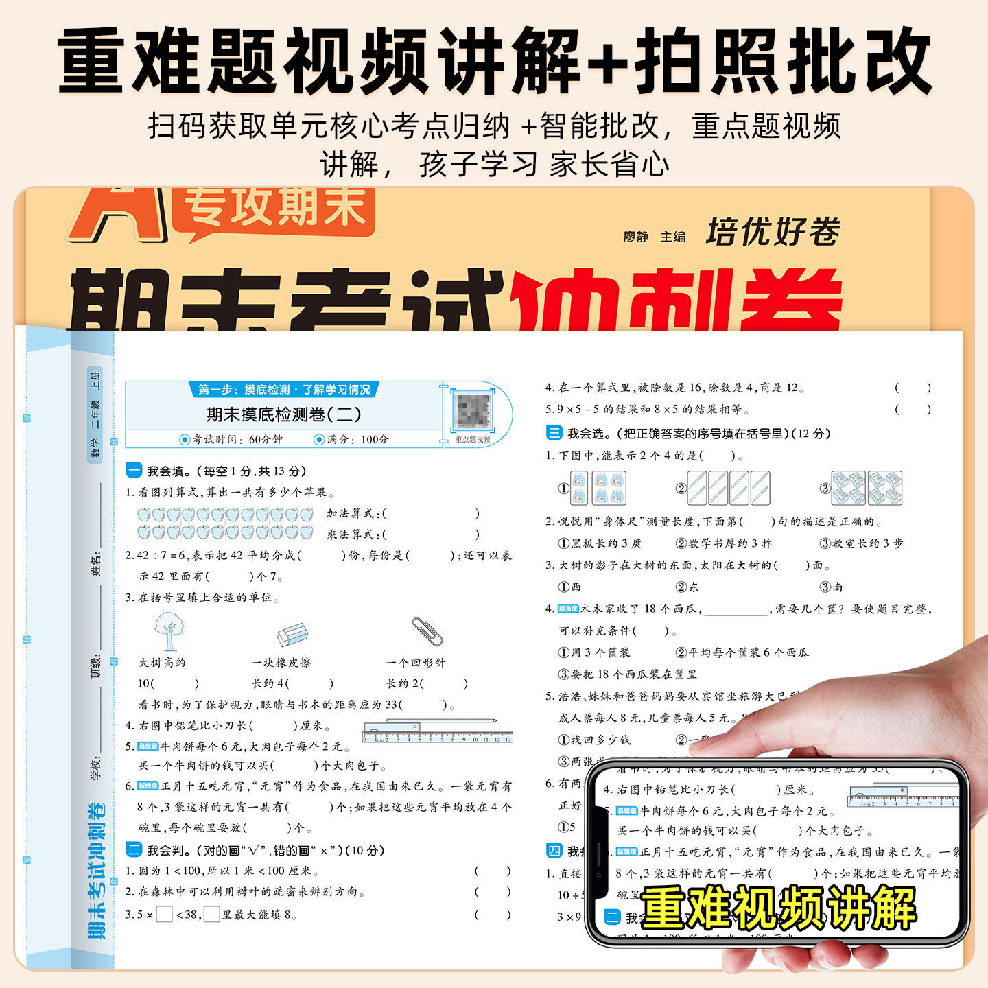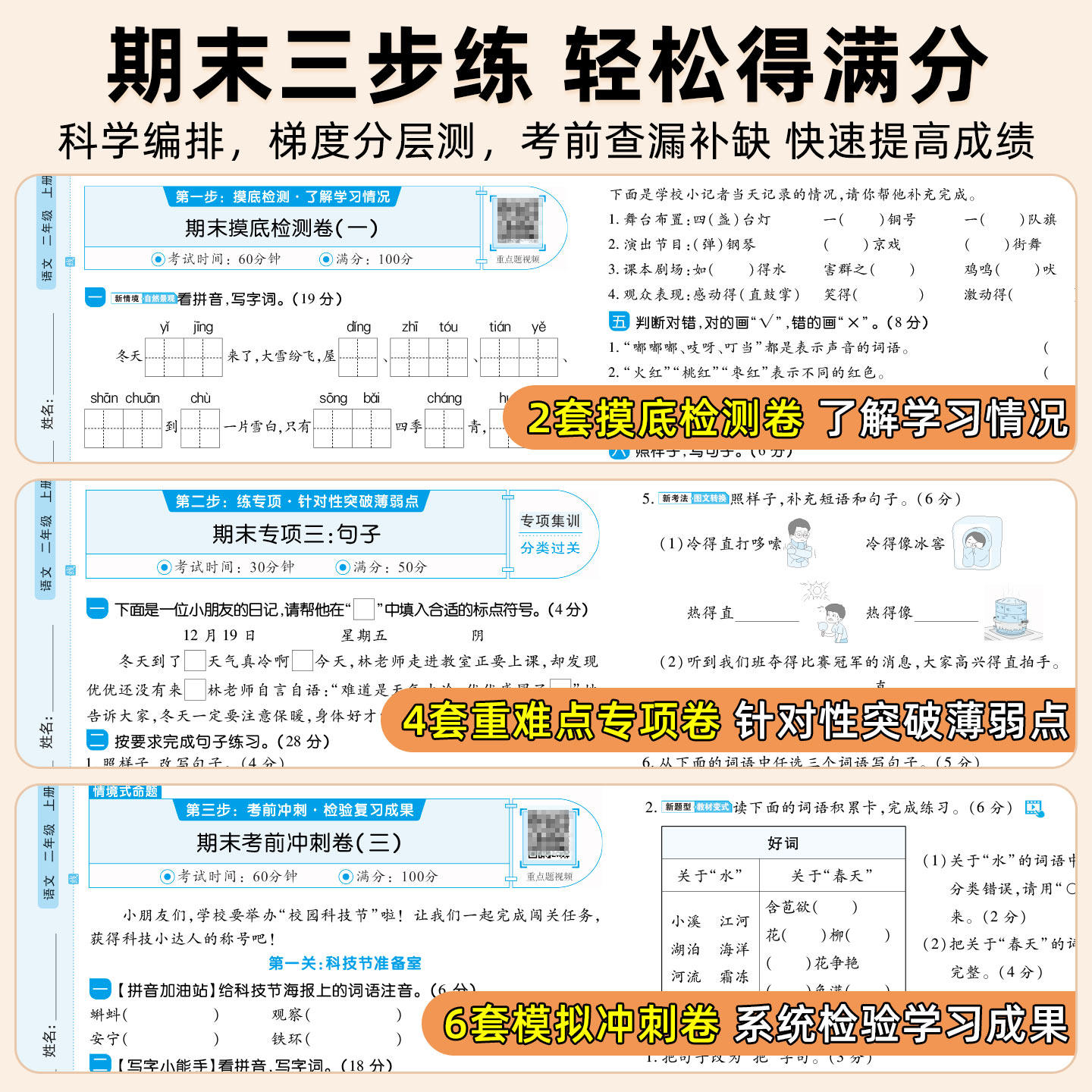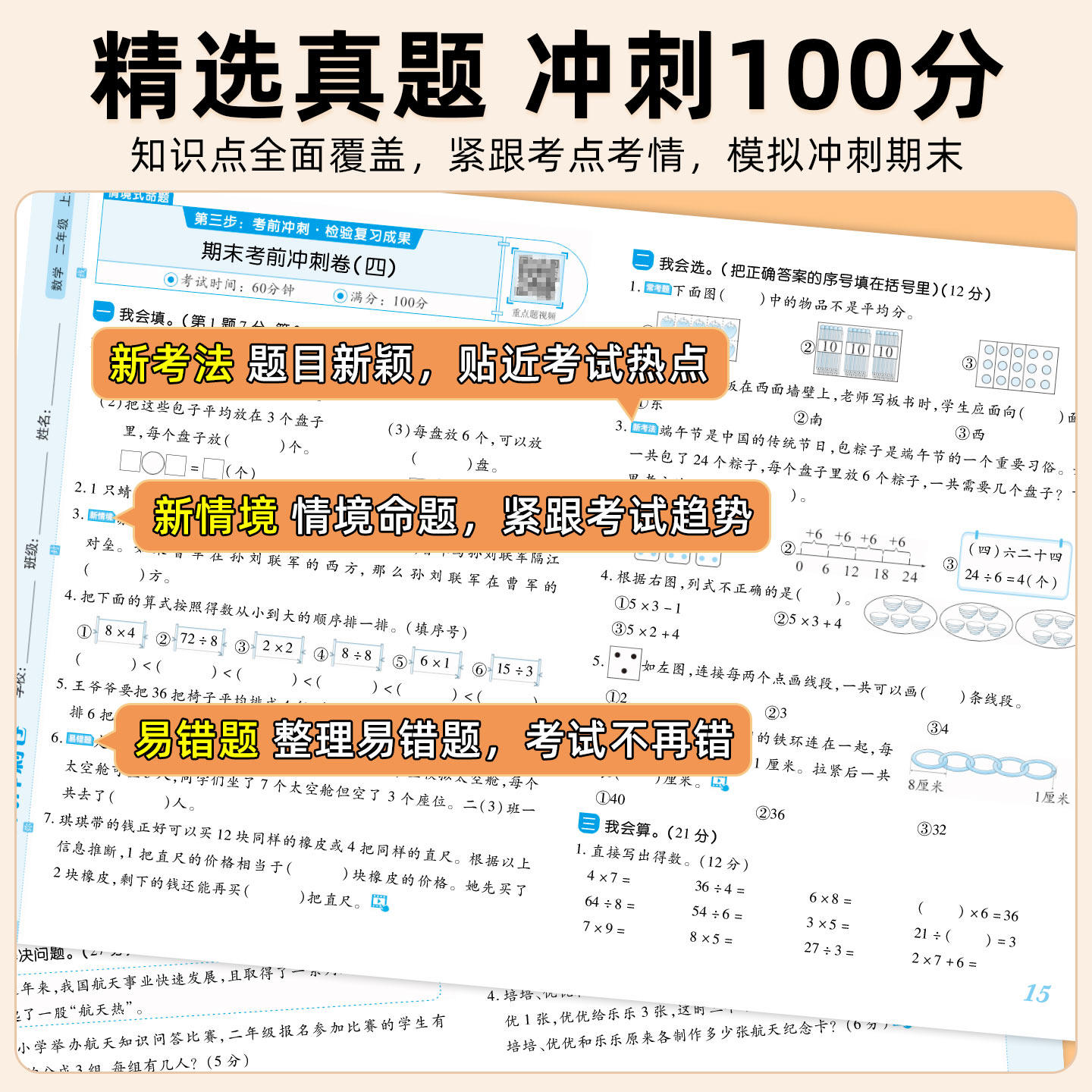 天猫2025秋季 期末考试冲刺卷二年级上册语文数学人教版期末考试总复习试卷测试卷期末冲刺100分试卷小学2年级重点难点专项训练考试卷