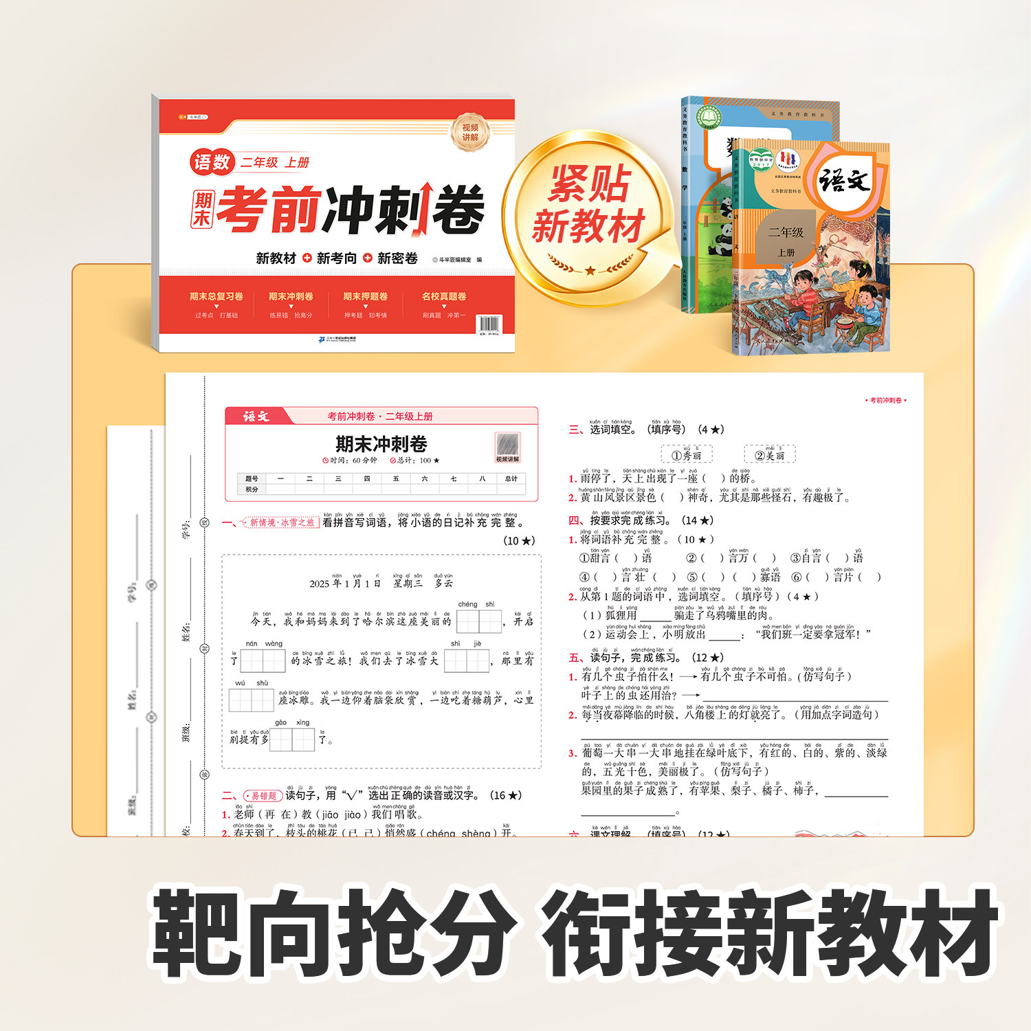 2025新版二年级上册试卷全套(人教版)专为小学二年级学生设计,涵盖语文、数学两科,包含单元测试卷、同步练习册、期中练习题及期末冲刺100分模拟卷。试卷紧扣教材大纲,题型丰富多样,难度适中,注重基础知识巩固与综合能力训练。每套试卷均配有详细答案解析,帮助学生查漏补缺,提升应试能力。无论是日常复习、阶段检测,还是考前冲刺,都能有效助力学生夯实基础、提高成绩。本套教辅资料编排科学,贴合教学进度,是家长辅导、学生自测的理想选择,助力孩子在小学学习中取得优异成绩。