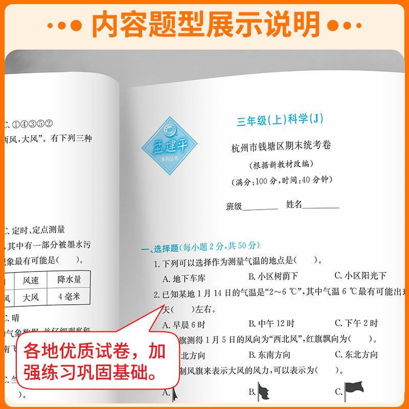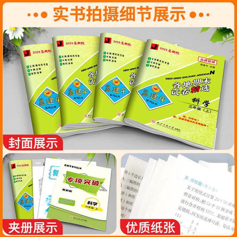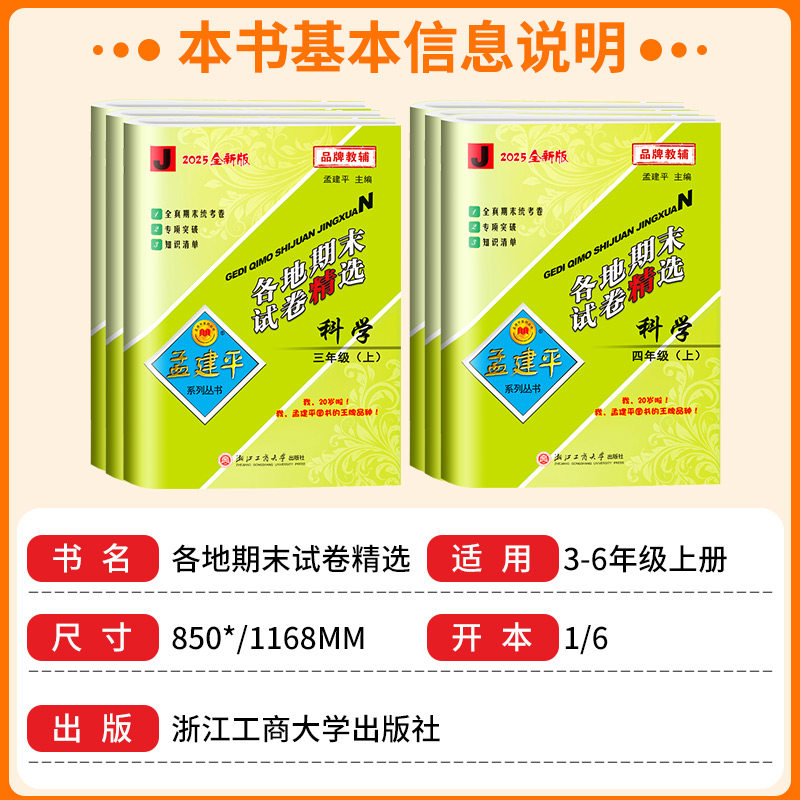 天猫浙江适用 科学期末复习卷 孟建平各地期末试卷精选三四五六年级上册下册科学测试卷全套教科版浙江专用期末复习历年真题模拟考试卷