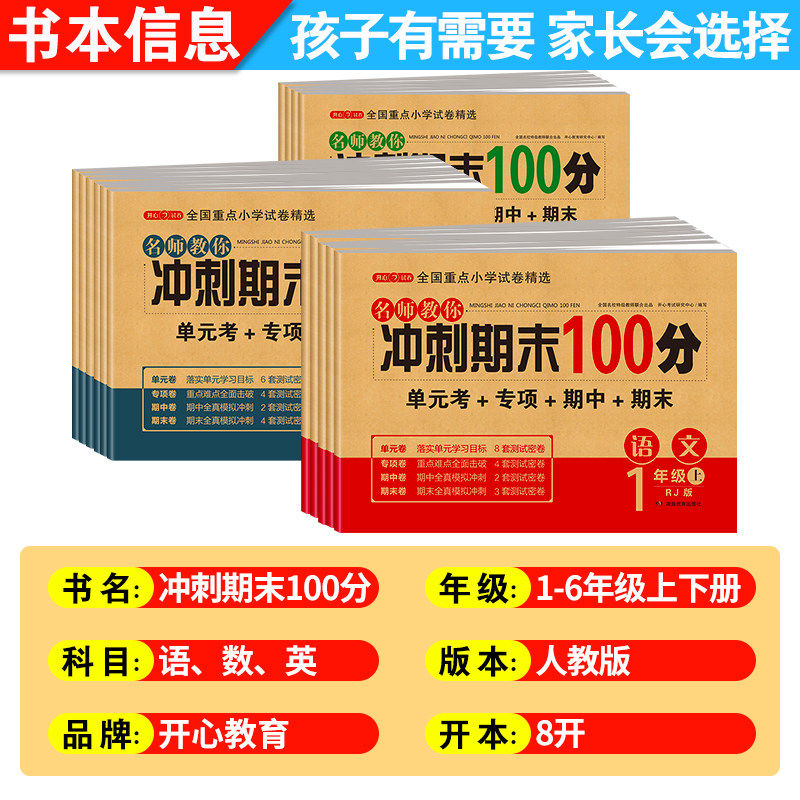 天期末冲刺100分 一年级二年级三四五六年级上下册试卷测试卷全套人教版语文数学英语小学单元专项训练期中期末考试黄冈一百分卷子