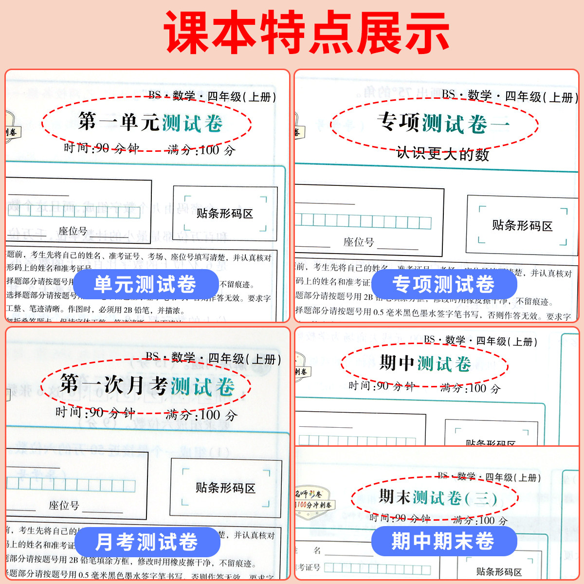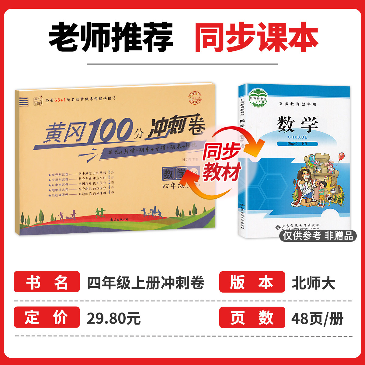 天猫北师大版四年级上册黄冈100分冲刺卷BS 小学生4年级上数学试卷考试卷子真题同步北师版课本教材四上单元测试卷全套课堂检测练习册