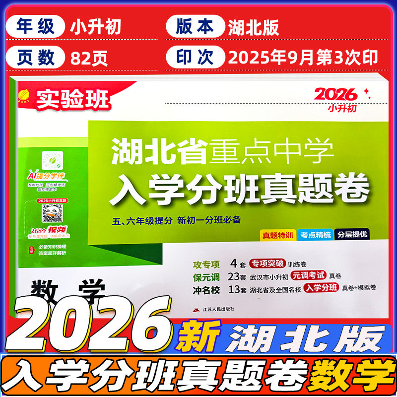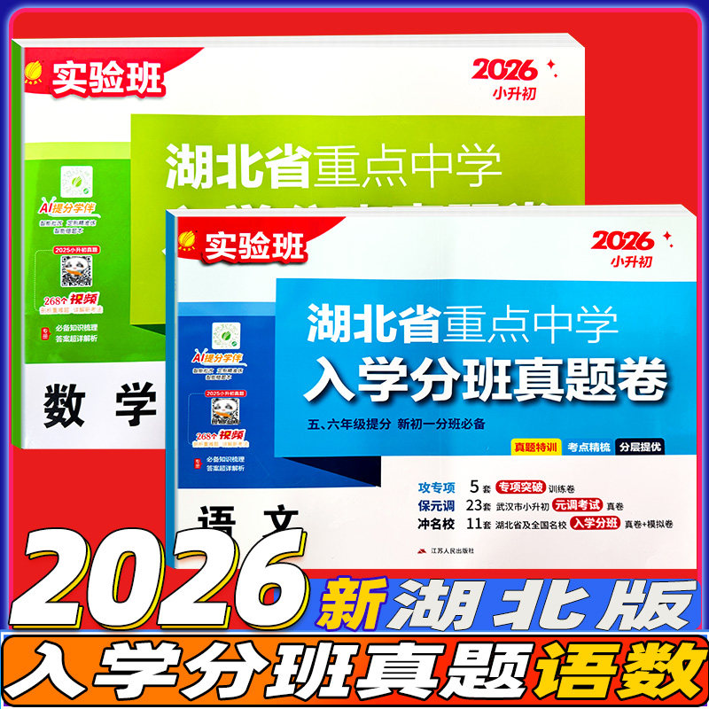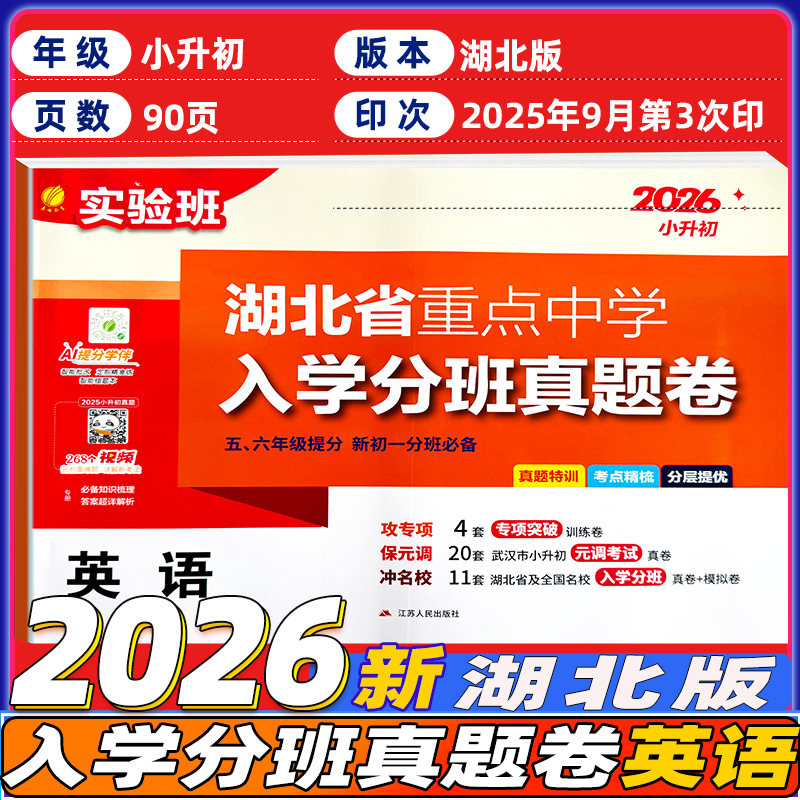 《2026实验班湖北省重点中学入学分班真题卷》专为五、六年级学生备战小升初及初一分班考试精心编写。试卷涵盖语文、数学、英语三科,精选湖北省重点中学历年真题与优质模拟题,紧扣新课标要求,突出重难点与高频考点。题型设计科学,难度梯度合理,既注重基础知识巩固,又强化综合运用能力,助力学生快速提分。每套试卷均附详细解析,帮助学生查漏补缺,提升应试技巧。适用于小学毕业升学复习、分班考试冲刺及日常强化训练,是通往理想中学的得力助手。