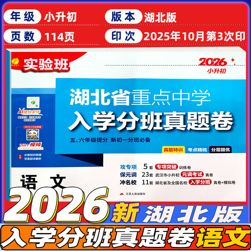天猫2026实验班湖北省重点中学入学分班真题卷语文数学英语小升初真题训练模拟卷五六年级提分初一分班小学毕业升学考试试卷精选