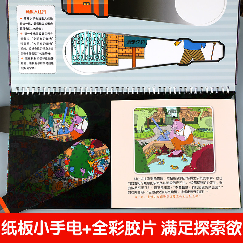 天猫视觉大发现全套4册 寻找隐藏的图画儿童手电筒游戏书大本 手电筒看里面科普透视绘本 专注力训练6岁以上找东西的书动物森林大探秘