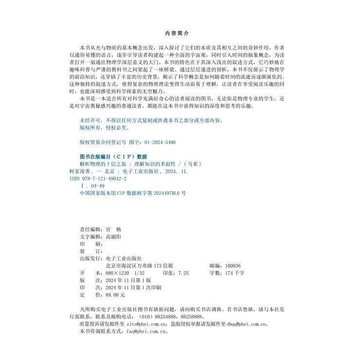 《官方旗舰店解析物理的十层之旅》是柯家浚推出的一部物理学科普力作,带领读者开启一场由浅入深、层层递进的物理探索之旅。本书通过“十层”结构,系统解析从经典力学到量子场论、从宏观宇宙到微观粒子的知识体系,揭示物质本质与相互作用的神秘力量。作者以通俗语言融合前沿成果,展现物理知识的多面性与内在逻辑,既适合初学者建立整体认知,也助力进阶者深化理解。作为物理前沿知识普及的佳作,本书不仅传递科学思想,更激发探索未知的 curiosity,是通往物理世界的理想向导。
