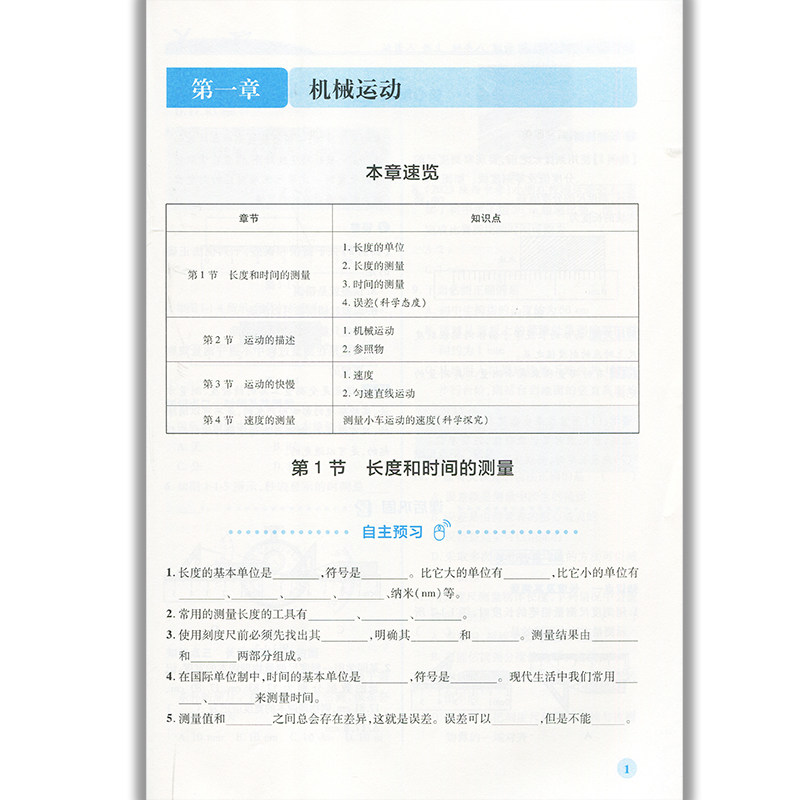 天猫新课标教材同步导练物理八年级上册配人教版RJ人民教育/陕西科学技术出版社 初二初中8/八年级上册物理绩优学案同步练习册教辅导书