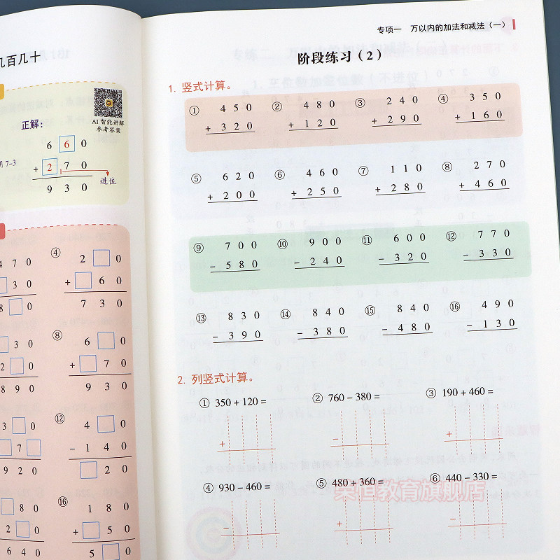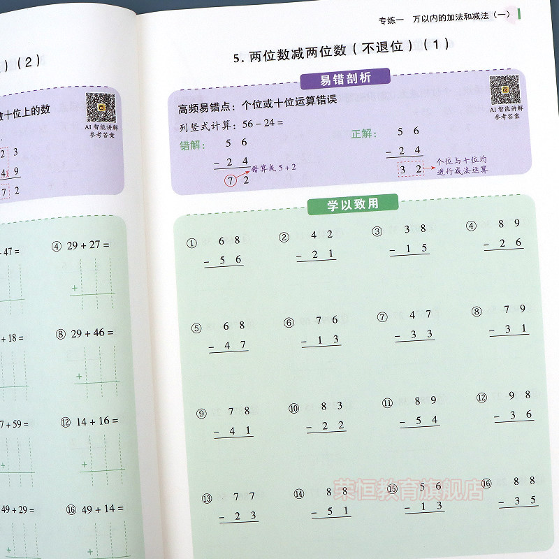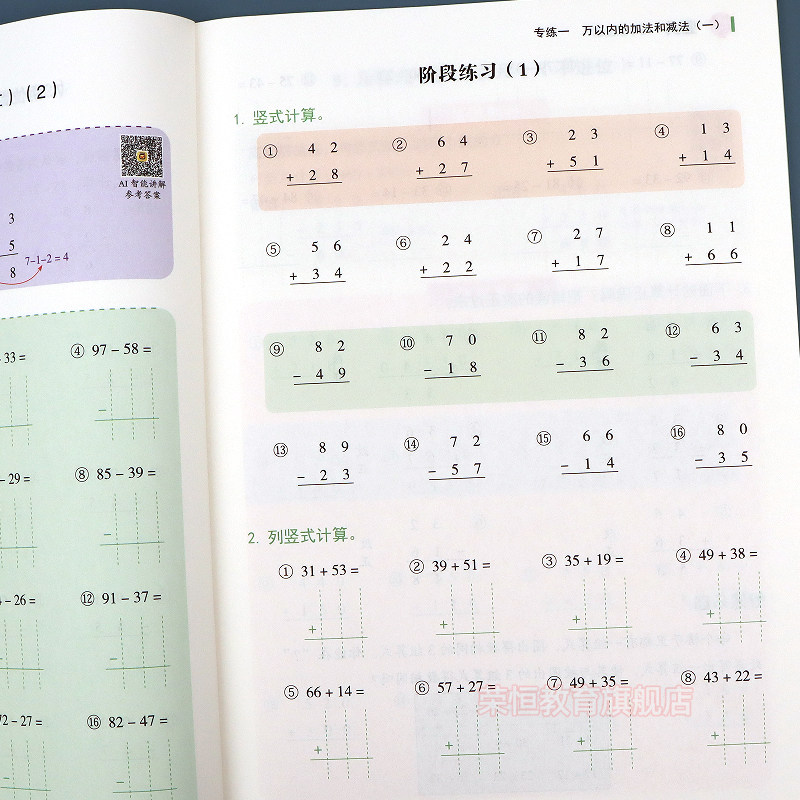 天猫三年级口算题天天练人教版上册数学口算天天练二升三下册笔算数学每日一练口算题卡小学3年级数学计算题强化训练竖式计算练习题