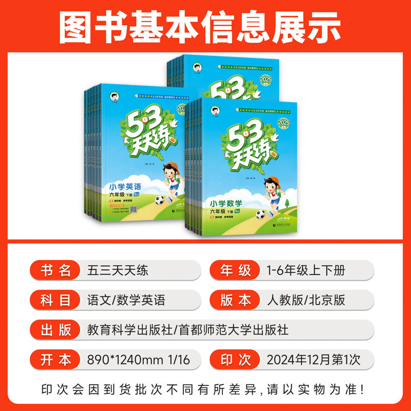 天猫2025新版53天天练北京版语文数学英语一年级二年级三四年级五六年级上册下册同步练习册训练全套测试卷人教版5.3五三5+3练习题