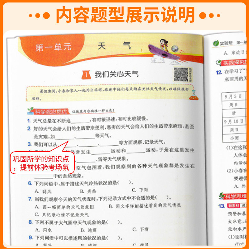 天猫浙江专用2025秋 实验班提优训练科学三四五六年级上册下册科学教科版小学教材同步配套练习册课本测试卷题训练课堂作业本一课一练