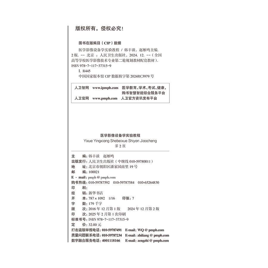 天猫医学影像设备学实验教程 第2版 本科影像技术配教 配增值 韩丰谈 赵雁鸣 主编 供医学影像影像技术专业用 人民卫生出版社