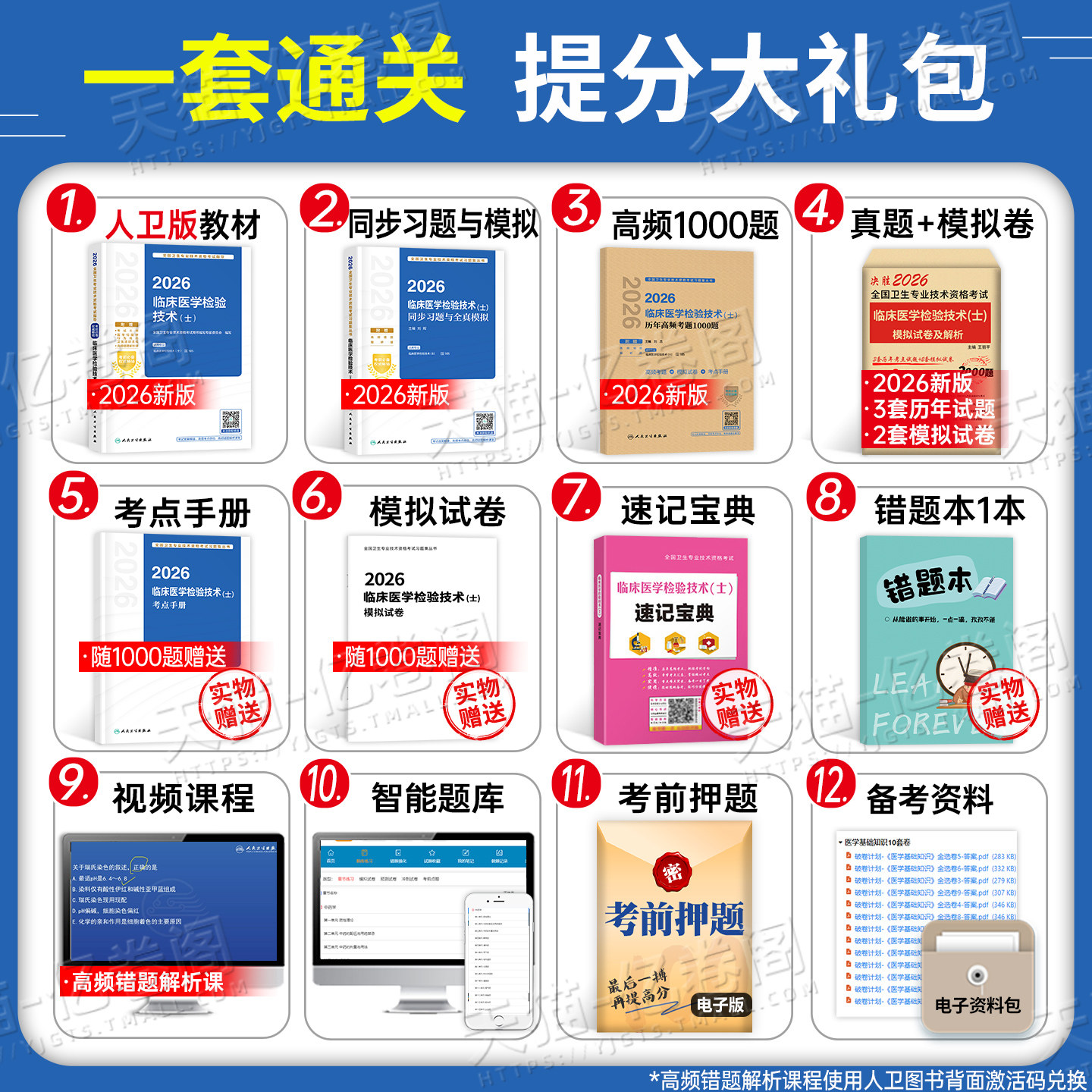 人卫版2026年《临床医学检验技术(士、师、中级)考试指导》是官方权威出版的职称考试辅导教材,紧扣最新考试大纲,涵盖基础知识、相关专业知识、专业知识和专业实践能力四大模块。本书融合2025年最新真题及高频考点,配有详细解析,帮助考生精准把握命题方向。同时配套历年真题库与模拟试卷,强化实战训练,适用于检验技士、技师、主管检验师及副高级职称备考。内容科学系统、重点突出,是人卫社为卫生专业技术人员量身打造的高效复习资料,助力考生顺利通过全国卫生专业技术资格考试。