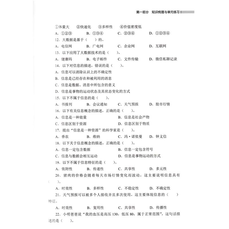 天猫2025年福建省普通高中信息技术学业水平考试复习指导用书单元过关测验与综合模拟 单元过关综合模拟测验题库 电子工业出版社