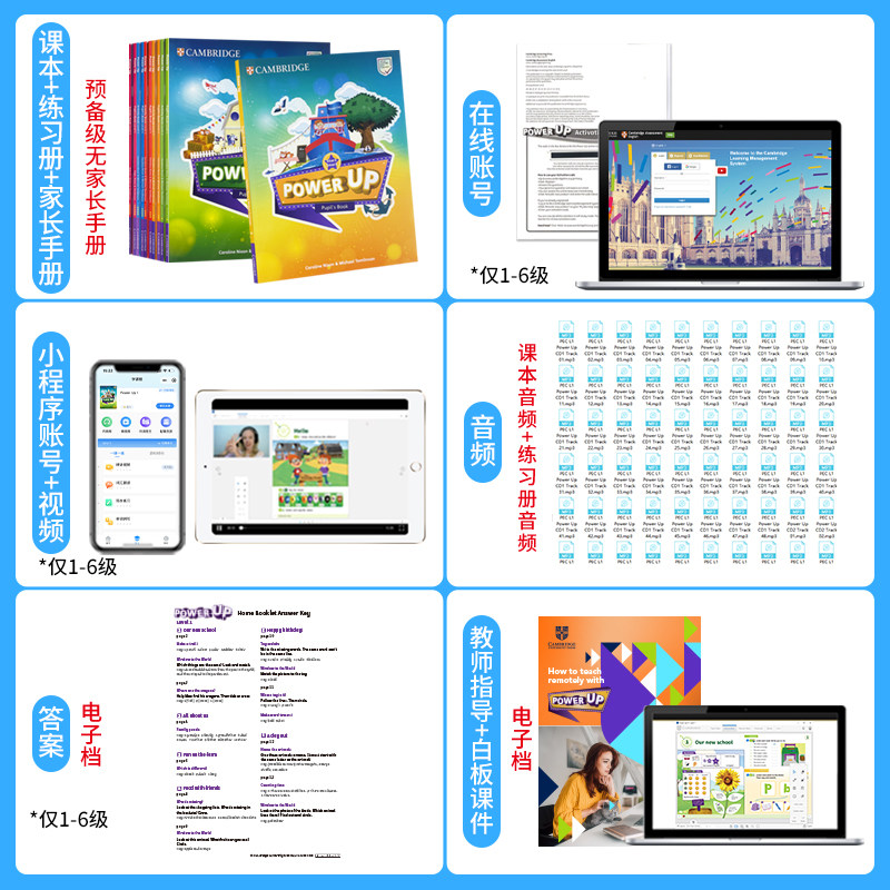《剑桥少儿英语Power Up》是剑桥官方专为7-12岁学习者设计的原版英语教材,涵盖Starter至Level 6共六个级别,全面对接YLE(剑桥少儿英语考试)Starters、Movers、Flyers及KET考试。教材融合语言学习、学科知识与21世纪技能,内容生动有趣,配有丰富的互动练习和多媒体资源。每级均含学生用书及配套在线学习账号,支持自主练习、听力训练与测评,助力系统提升听、说、读、写综合能力。作为剑桥大学出版社权威出品,Power Up兼具趣味性与学术性,是备考YLE及衔接国际英语课程的优选教辅,适合培训机构及家庭使用。