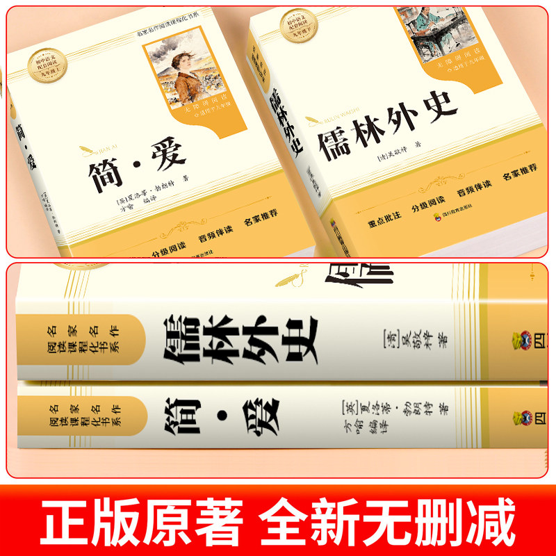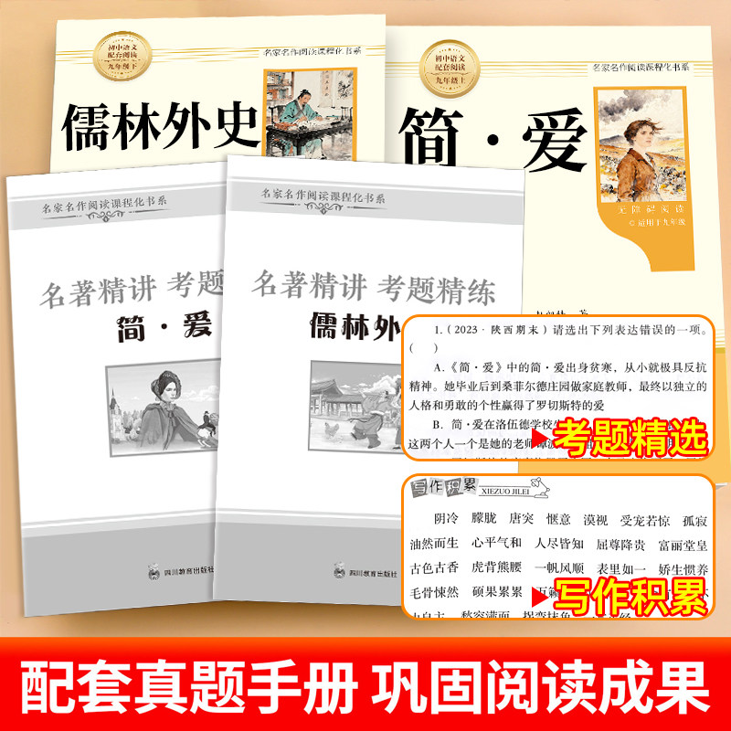 天猫【2025完整版】简爱和儒林外史九年级必读人教版下册课外阅读书籍语文经典名著初中生九下必读书目老师推荐人民教育正版原著出版社