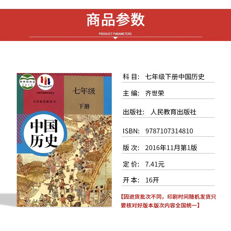 老版复习正版人教版初中《中国历史》七年级上下册全套共2本教材,由人民教育出版社出版,是初一学生系统学习中国古代至近代历史的核心教科书。上册涵盖从远古时期到南北朝的历史发展,重点介绍中华文明的起源、早期国家形成及民族融合;下册讲述隋唐至明清的政治、经济、文化与社会变迁,突出统一多民族国家的巩固与发展。教材内容权威、结构清晰,配有丰富的插图与史料,注重培养学生历史思维与家国情怀。作为经典老版教材,虽部分内容略有更新,但知识体系完整,适合复习巩固与历史爱好者收藏使用。