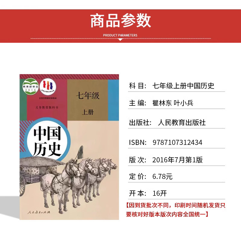 天猫老版复习正版人教版初中中国历史七年级上下册全套2本教材课本教科书人民教育出版社人教版7七年级上中国历史全套初一上下册历史书