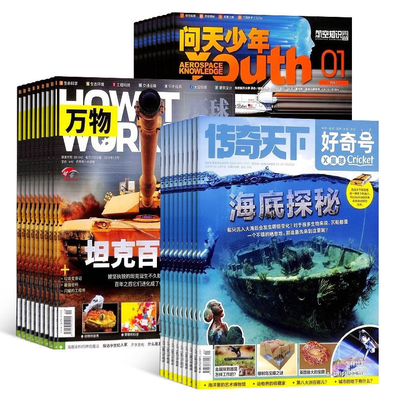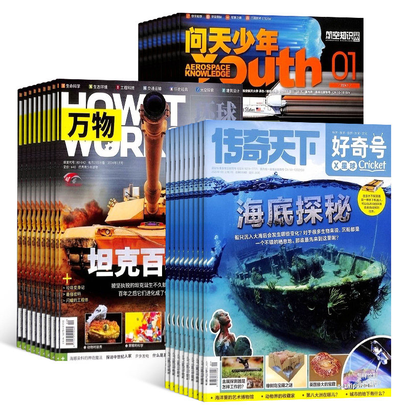 天猫好奇号加万物加问天少年杂志组合 2026年1月起订 1年共36期 杂志铺 航空航天科学人文历史地理 青少年科普中