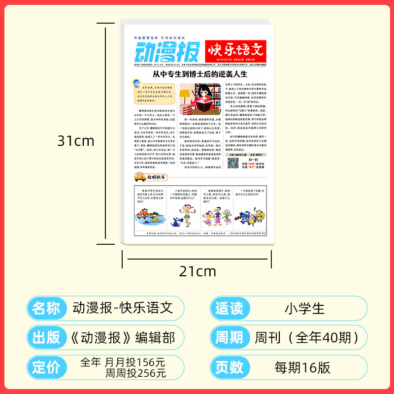 《快乐语文》小学生动漫报(2024年1-11月)专为6-12岁小学生精心打造,融合趣味漫画与语文学习,是阳光少年报旗下的优质期刊。本报覆盖1-6年级阅读需求,以生动活泼的动漫形式呈现课文拓展、成语故事、写作技巧等内容,激发孩子阅读兴趣,提升语文素养。每期紧扣课标,兼顾知识性与趣味性,帮助孩子在轻松氛围中积累词汇、锻炼表达、拓展思维。图文并茂、寓教于乐,是陪伴小学生快乐成长的语文好伙伴,助力阳光少年在阅读中收获智慧与自信。
