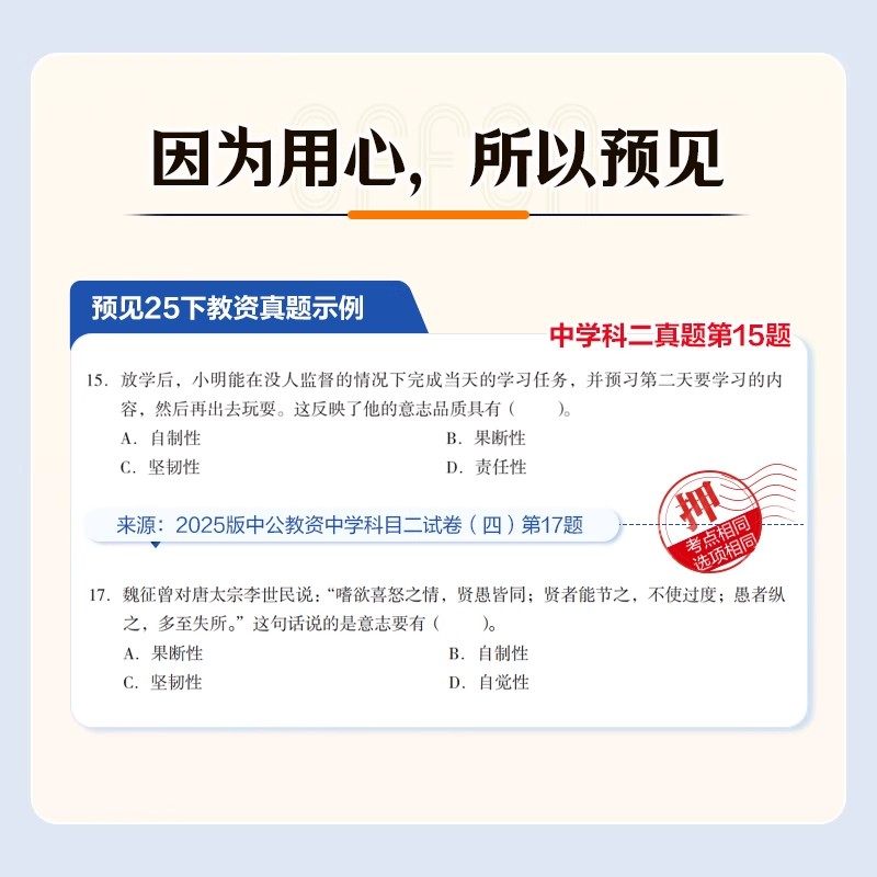 2026年初中教师资格证考试资料涵盖语文、数学、英语、历史、地理、生物、物理、化学、政治、体育、音乐、美术、信息技术等全学科,适用于中学、高中及中职教师资格考试。教材内容紧扣最新考试大纲,系统梳理知识点,配有典型例题、真题解析与模拟试题,帮助考生高效备考。资料注重理论与实践结合,强化教学设计、课堂实施与教育评价等核心能力训练。权威编写团队确保内容准确、重点突出,是广大考生顺利通过教资笔试与面试的得力助手。无论是零基础入门还是冲刺复习,本套教材都能提供全面、精准的学习支持。