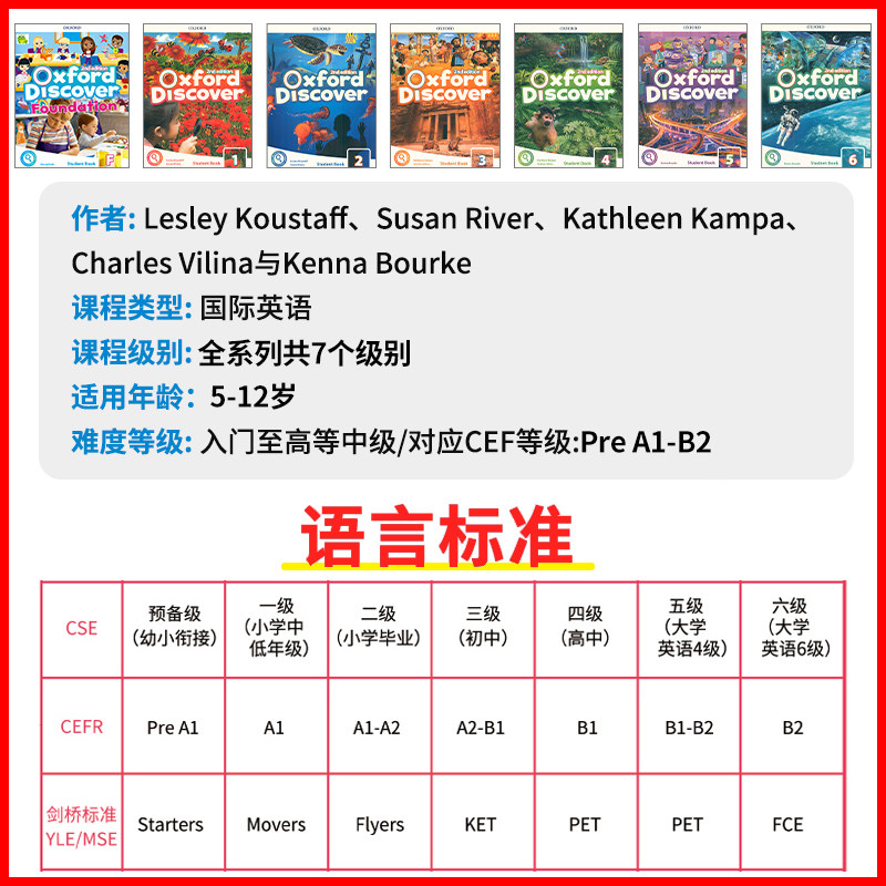 《Oxford Discover》第二版是一套专为6-12岁非母语儿童设计的综合性英语教材,共6个级别(1-6),适合小学阶段系统学习。教材融合CLIL(内容与语言整合学习)和21世纪技能培养,通过引人入胜的主题探索世界知识,同步提升听、说、读、写能力。新版优化了单元结构,强化语法与词汇的自然习得,增加更多互动活动和数字化资源,支持线上线下融合教学。每单元以“Big Question”启发思考,激发学生好奇心与批判性思维。配套教师资源丰富,包括互动白板课件、测评工具等,助力打造生动高效的课堂,全面培养孩子的语言能力与综合素养。