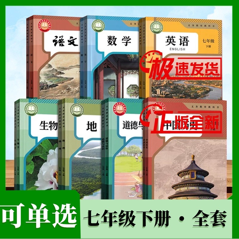 天猫2025新版正版初一下册全套教科书7上语文数学英语生物地理政治历史教材人教版仁爱外研译林沪教冀北师大湘苏沪七年级下册全套课本