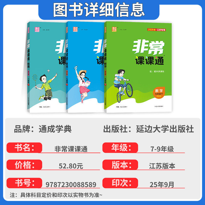 天猫江苏专用2026春通成学典非常课课通七八九年级上下册语文数学英语物理化学同步讲解人教版苏教版译林版初中课本练习册同步教材预习