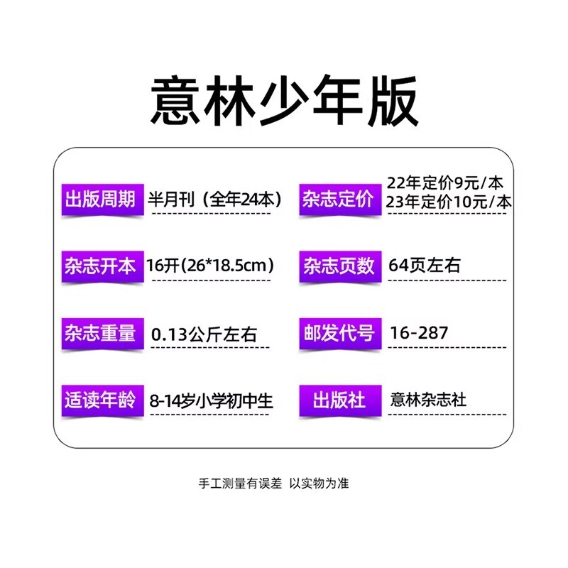 天猫意林少年版杂志2022/2023/2024年【全年珍藏过刊】1-12月合订本小国学中小学生作文素材写作校园励志读本现货阅读文学美文过刊刊物