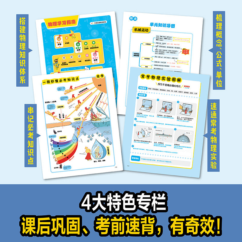 【当当网正版书】2026新版漫画初中物理化学漫改教材,专为初中生打造,融合人教版课本核心内容,以生动有趣的漫画形式呈现物理、化学必背知识点、考点及实验操作。全书涵盖七至九年级重点内容,包括化学方程式、元素周期表、力学、电学等关键模块,搭配“必刷题”与“默写训练”,强化记忆与理解。图文结合,轻松化解抽象概念,提升学习兴趣与效率。适合课前预习、课后复习及考前冲刺,是学生夯实基础、突破重难点的理想教辅工具,助力中考科学科目稳步提分。