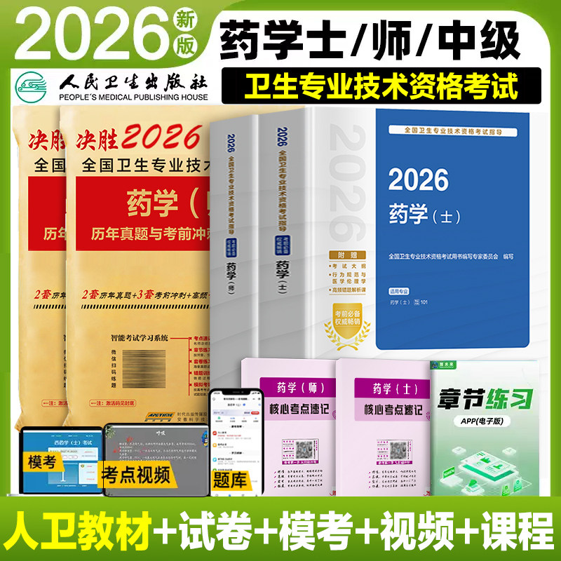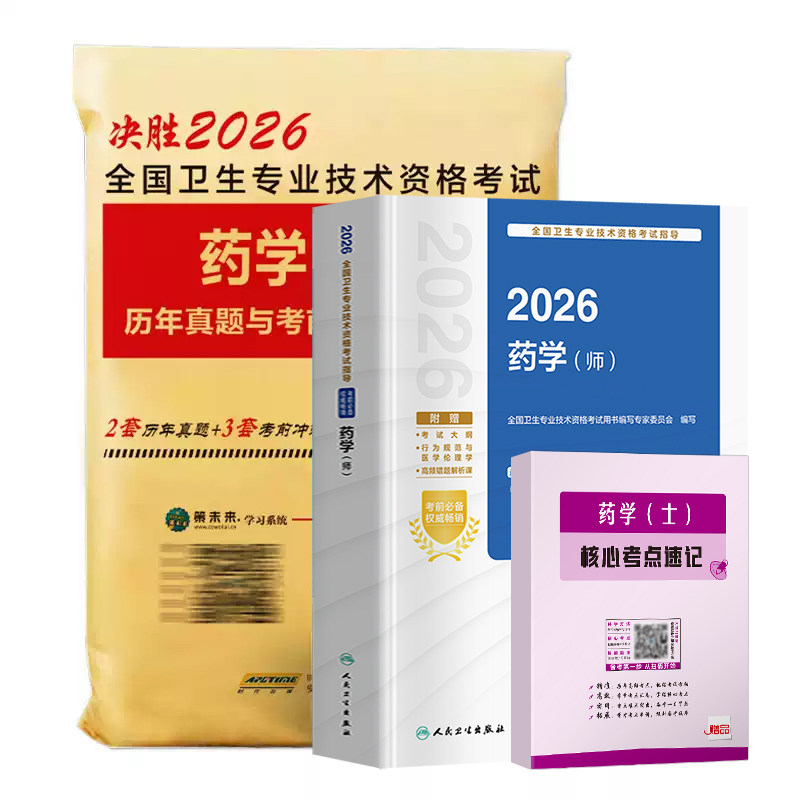 【人卫官方】2026年初级药学师(药士)职称考试指导教材,由人民卫生出版社权威出版,紧扣最新考试大纲,系统梳理药学专业基础知识与核心考点。配套模拟试卷与历年真题详解,帮助考生熟悉题型、掌握答题技巧,提升应试能力。全书内容涵盖药物化学、药剂学、药理学及药事管理等重点模块,结构清晰、重点突出。搭配军医版题库(2025年更新),提供海量习题与智能练习模式,强化实战训练。适用于西药学士、药剂师等卫生专业技术资格考试备考,是人卫官方推荐的权威复习资料,助力考生高效通关,顺利取得初级药学师资格证书。