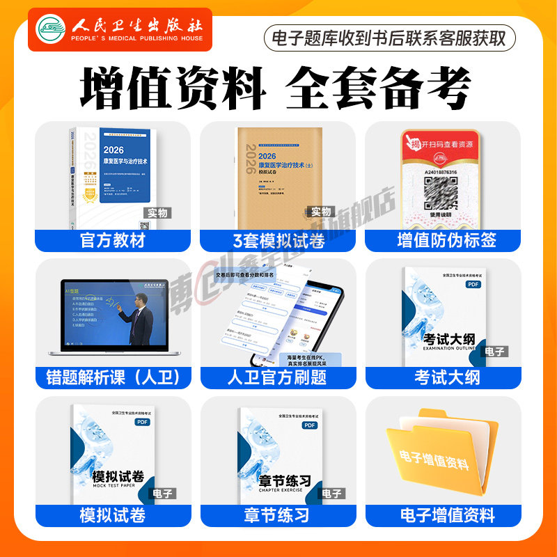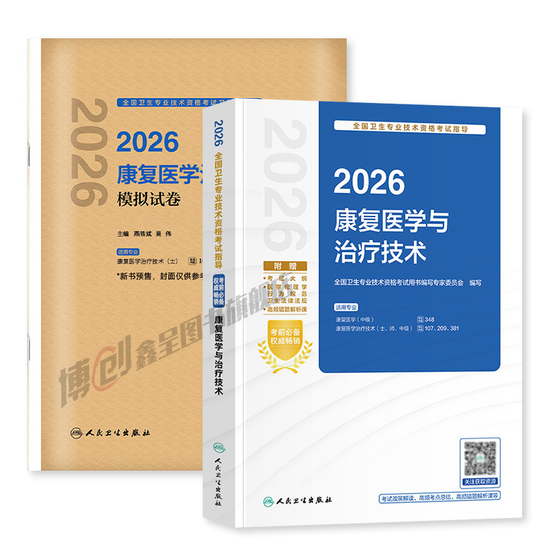 2026年人卫版《康复治疗技术初级士/师/中级考试指导》是官方权威教材,紧扣最新考试大纲,系统涵盖康复评定、物理治疗、作业治疗、言语治疗等核心内容,适用于康复治疗师职称晋升备考。配套《康复医学与治疗技术职称模拟试卷》及《康复学主治医师历年真题题库》,精选高频考点与经典真题,强化实战训练,帮助考生熟悉题型、掌握答题技巧。教材内容科学严谨,结构清晰,融合理论与实践,是康复专业人员提升专业水平、顺利通过职称考试的重要学习工具,广受考生信赖与推荐。