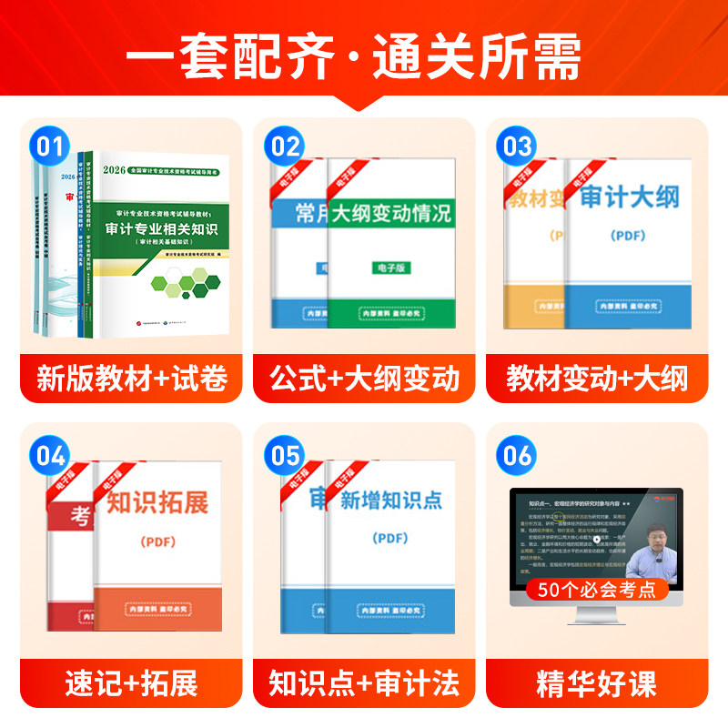2026年中级审计师考试教材及配套资料全面涵盖《审计理论与实务》和《专业相关知识》两大科目,系统梳理考试大纲核心内容,帮助考生夯实基础、提升应试能力。历年真题试卷精选近年高频考点与典型题型,辅以详细解析,助力考生把握命题规律。中大网校推出的网课视频由资深讲师授课,深入浅出讲解重难点,支持灵活学习。此外,平台还提供初级、高级审计师考试资源,形成完整备考体系。无论是自学还是跟班复习,2026年中级审计师考试资料都能为考生提供高效、精准的备考支持,是通往职业资格认证的有力保障。