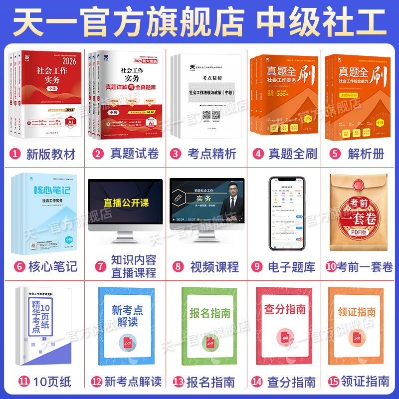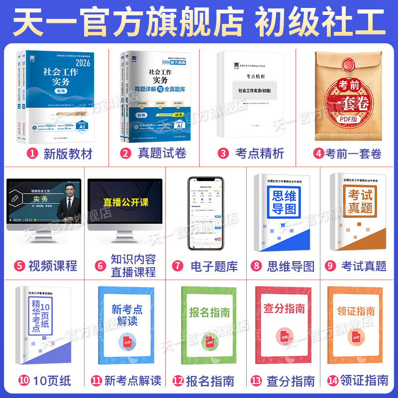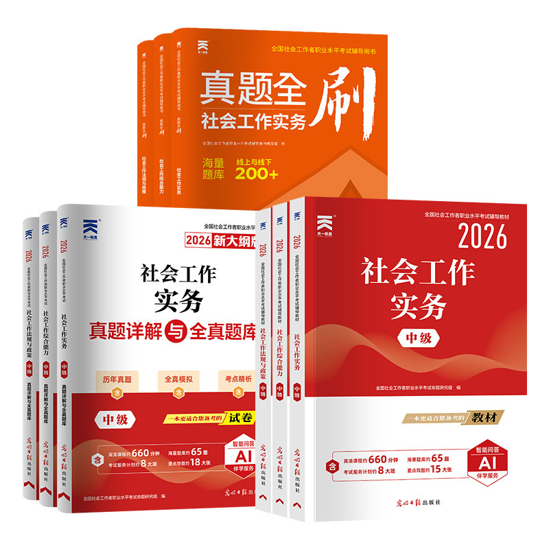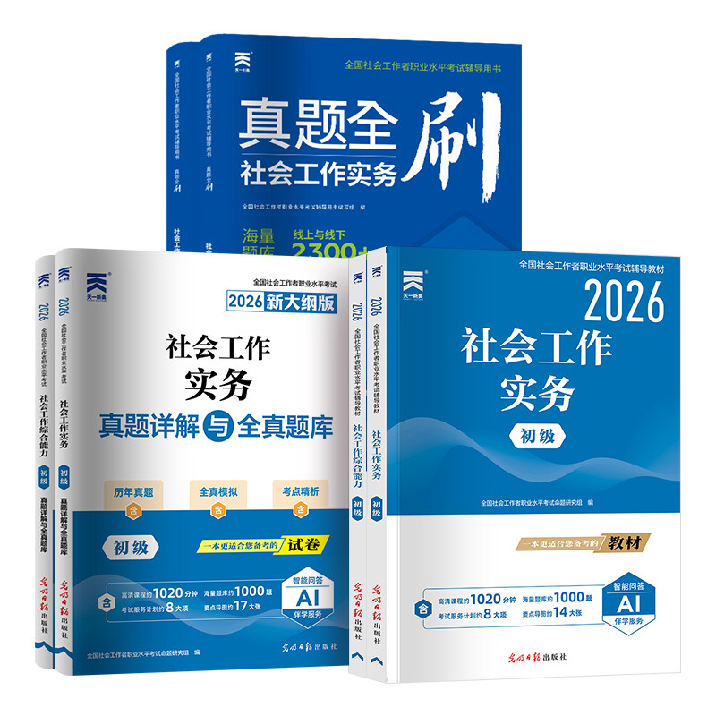 2026年全新上市!天一官方推出《社会工作者初级/中级2026年考试教材及真题试卷》,紧扣最新考试大纲,涵盖《社会工作综合能力》与《社会工作实务》核心内容,适用于全国社会工作师职业水平考试(初级、中级)。教材由权威专家编写,知识点精准、结构清晰,配套历年真题及高质量模拟卷,助力考生高效备考。2025年版本已广受好评,2026版进一步优化解析与考点标注,新增热点案例与政策解读,全面提升应试能力。无论是零基础学员还是进阶考生,都能通过本套资料系统掌握理论、提升实务技能,顺利通过社工证考试,迈向专业社工之路。