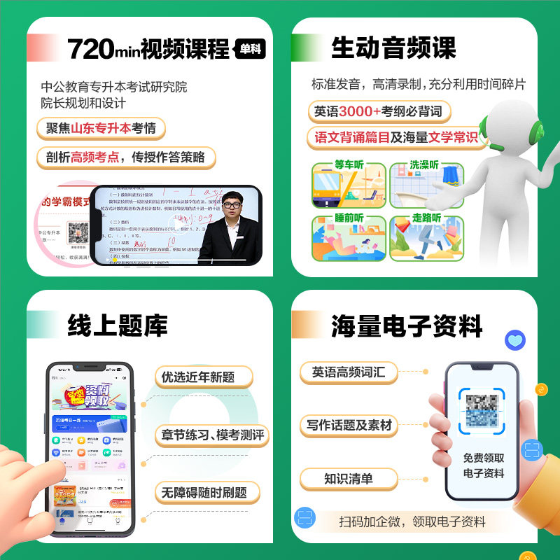 中公教育2026年山东专升本考试专用教材,涵盖高等数学(高数一、二、三)、英语、计算机、大学语文等核心科目,配套《必刷2000题》真题试卷,精选历年真题与高频考点,帮助考生夯实基础、突破重点。教材内容紧扣最新考试大纲,题型全面,解析详尽,适合系统复习与冲刺提分。同时提供2025年同步网课视频,由资深讲师精讲知识点与解题技巧,支持随时随地高效学习。无论是统招专升本还是成考备考,本系列资料均为山东考生量身打造,助力考生科学备考、顺利上岸。