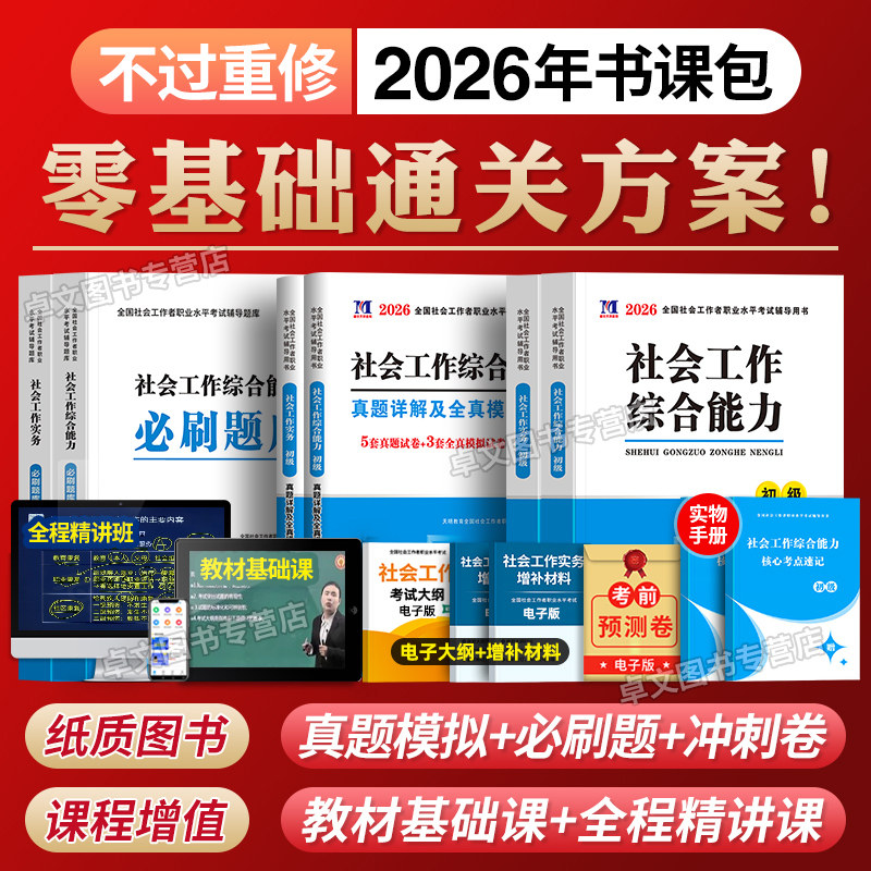 2026年社会工作者职业水平考试(初级/中级)官方推荐教材及历年真题库全套用书,由权威出版社精心编撰,紧扣最新考试大纲。本套丛书涵盖《社会工作综合能力》与《社会工作实务》两大核心科目,内容系统全面,理论结合实践,适用于助理社会工作师及中级社会工作师备考。书中精选近五年真题,配套详细解析,帮助考生掌握命题规律与答题技巧。同时,本书也适用于社区招聘、公益岗位等社会工作人员能力提升。2025年修订版已融入最新政策法规与行业动态,是备考2026年社工证考试的必备工具书,助力考生高效通关,提升专业素养。