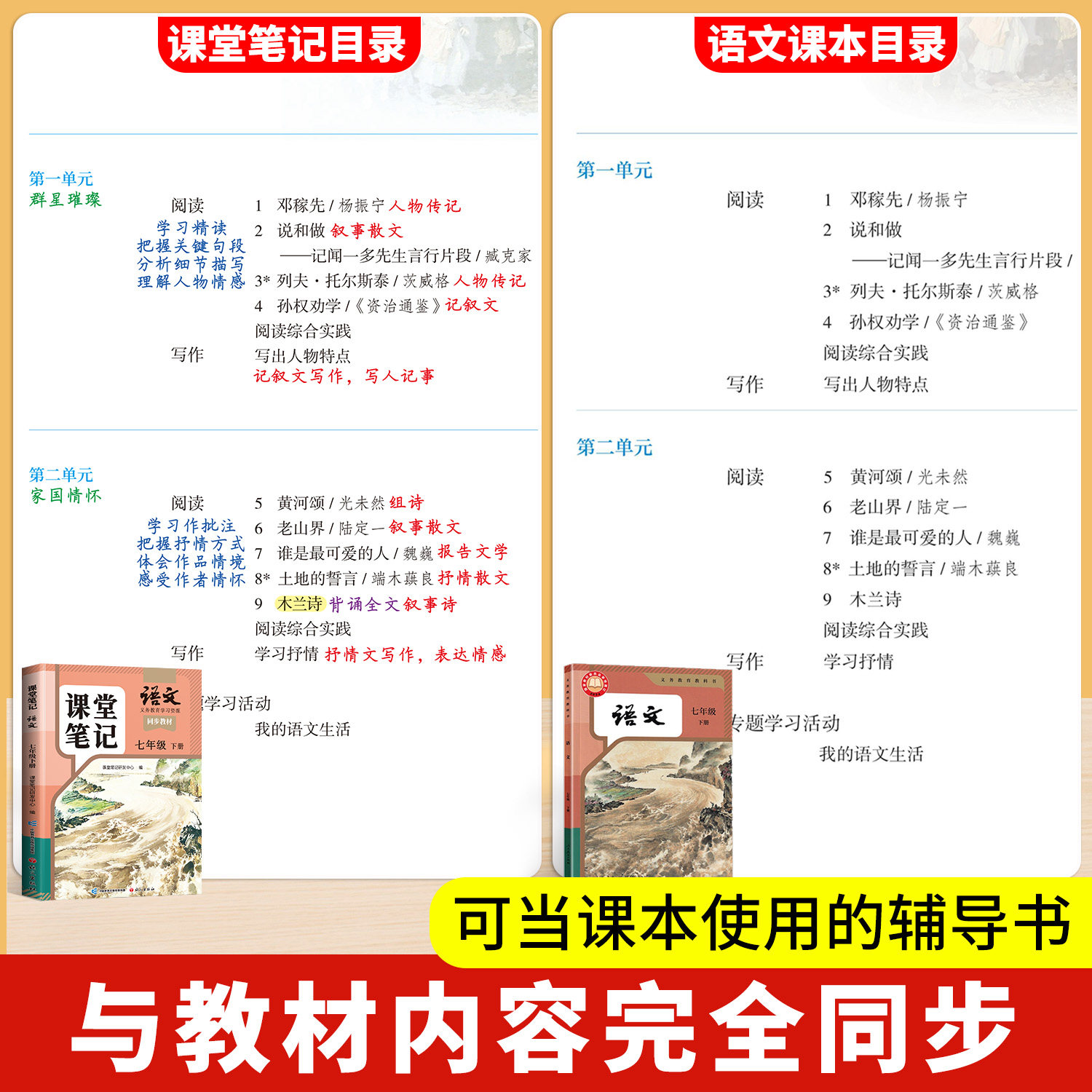 天猫【斗半匠】2026适用课堂笔记七年级下册上册语文人教版七下初一新课本全套预习同步课本教辅资料7下语文书中学随堂笔记学霸解读