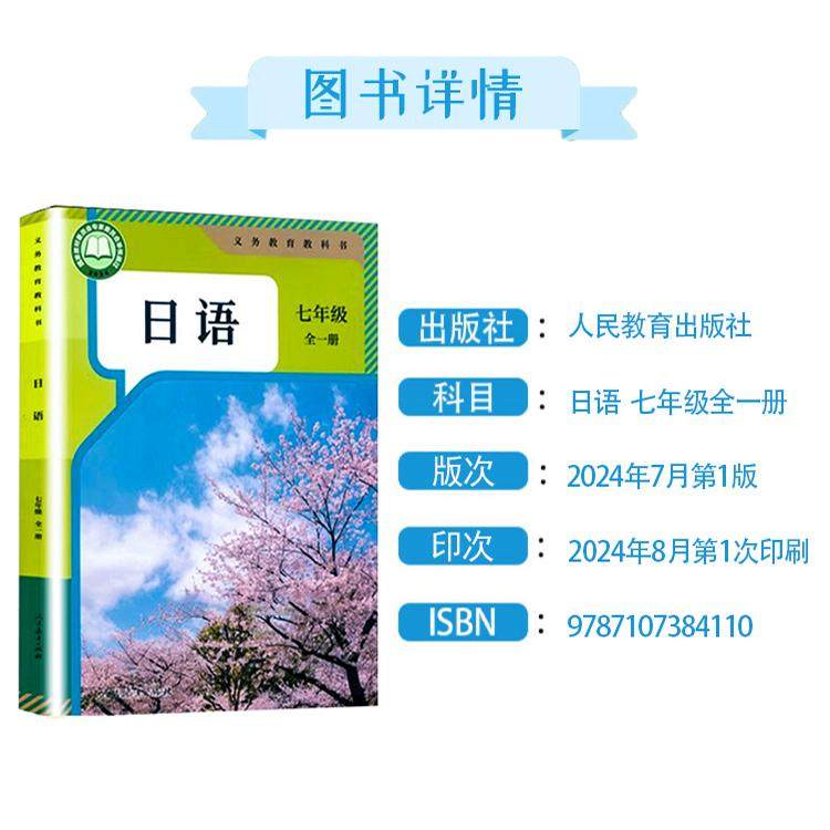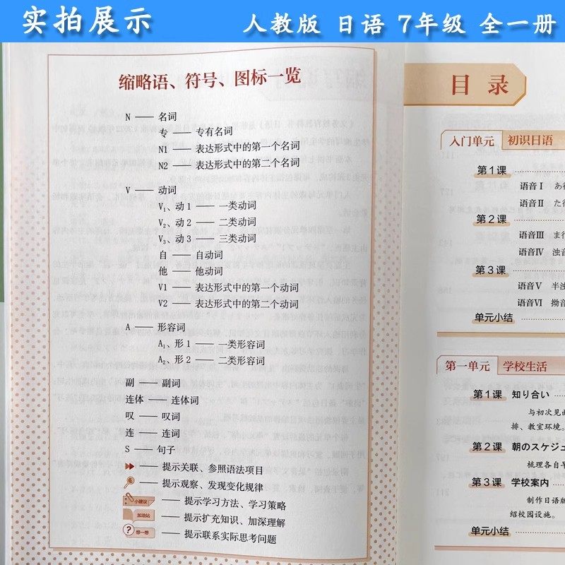 天猫2025年新版人教版初中日语教材7七年级全一册课本教材教科书人民教育出版社7七年级上下册日语书 初一人教版日语课本全一册