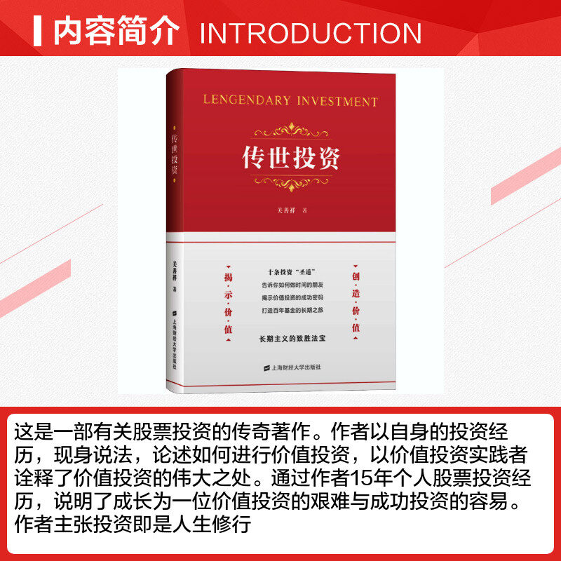 天猫传世投资 关善祥 上海财经大学出版社 正版书籍 新华书店旗舰店文轩官网