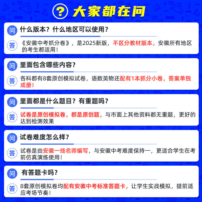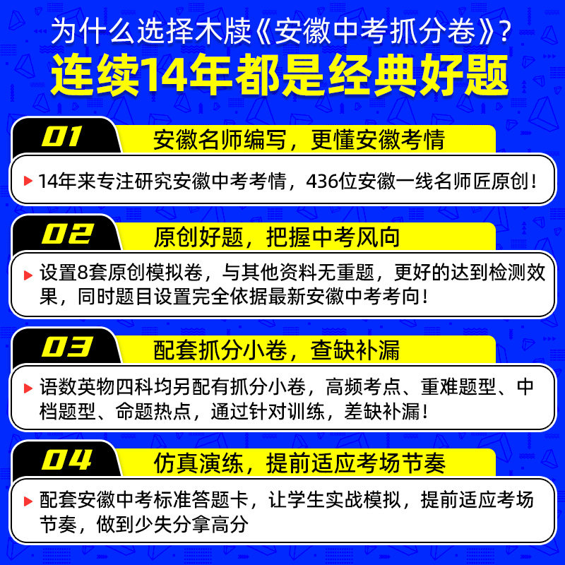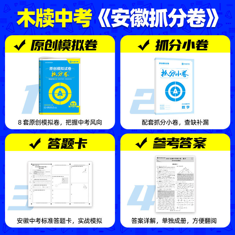 天猫木牍中考2025安徽中考抓分卷语文英语数学物理化学历史道德与法治政治安徽省中考模拟试卷真题卷全套冲刺预测卷初三九年级复习资料