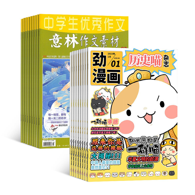 天猫历史喵+意林作文素材杂志组合 2026年一月起订 1年共36期 杂志铺 全年订阅 幽默风趣历史漫画书 中学生作文辅导课外阅读期刊杂志