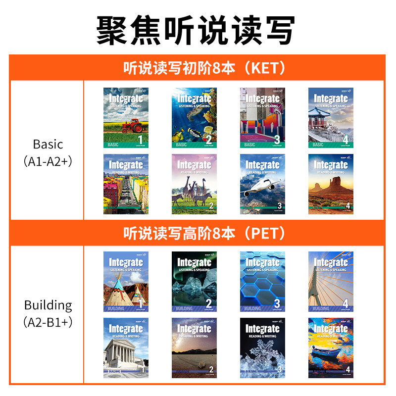 天猫原版进口小学少儿初中英语教材 Integrate教材 listening speaking reading writing 听力口语阅读写作对标剑桥KET/PET考级教材
