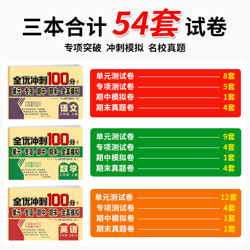 2025新版三年级上下册试卷测试卷全套《全优冲刺100分》测评卷,依据人教部编版语文、数学教材精心编写,涵盖单元、期中、期末等各类测试题型。试卷紧扣新课标要求,题型丰富、难度适中,注重基础知识巩固与综合能力培养,帮助学生系统梳理知识点,提升解题技巧。每套试卷配有详细答案解析,便于家长辅导和学生自查。同步练习设计科学,强化重点难点,助力学生查漏补缺,稳步提高成绩。是三年级学生日常练习、阶段检测和考前复习的理想资料,助力孩子轻松冲刺100分,夯实学习基础,培养良好学习习惯。
