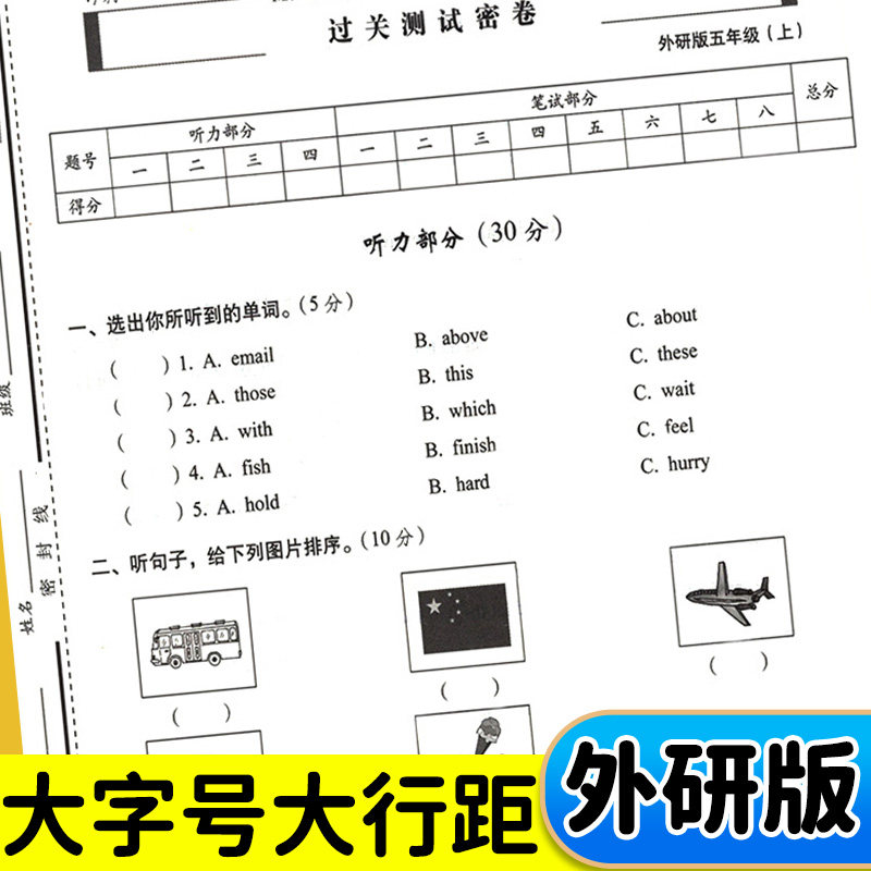 外研版三起点《一起点英语》期末冲刺100分试卷,专为小学三至六年级学生设计,覆盖上册全套内容,紧扣教材单元知识点。试卷包含单元测试卷、同步练习、模拟考试及真题训练,题型丰富,难易适中,全面考查学生的听、说、读、写能力。每套试卷均依据外研社教材编写,与教学进度同步,帮助学生巩固基础、查漏补缺,提升综合语言运用能力。适合日常复习、阶段检测和期末冲刺使用,是家长辅导、教师教学和自主学习的高效工具,助力学生轻松取得优异成绩。