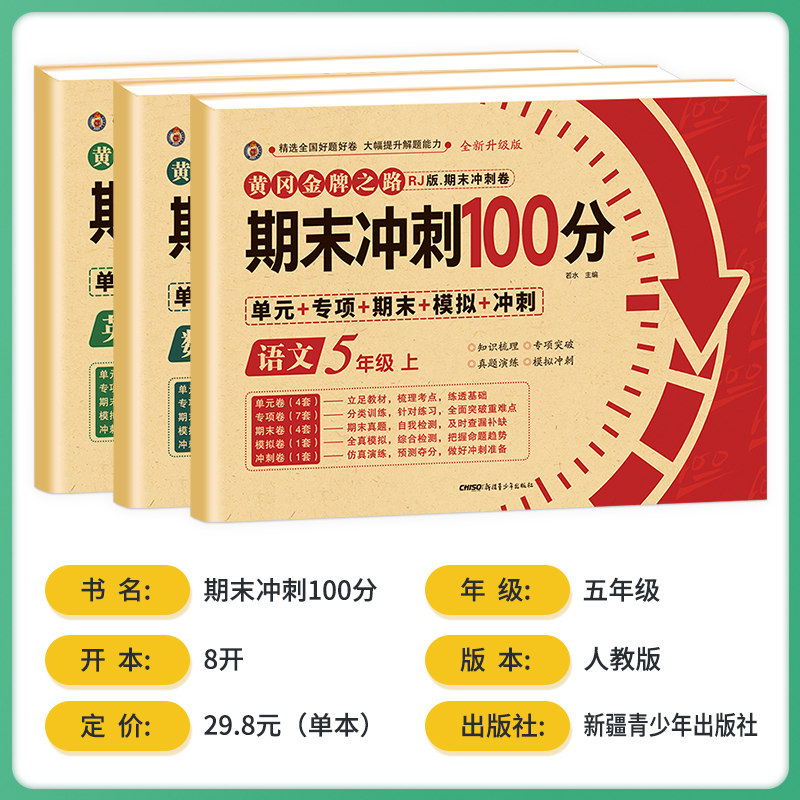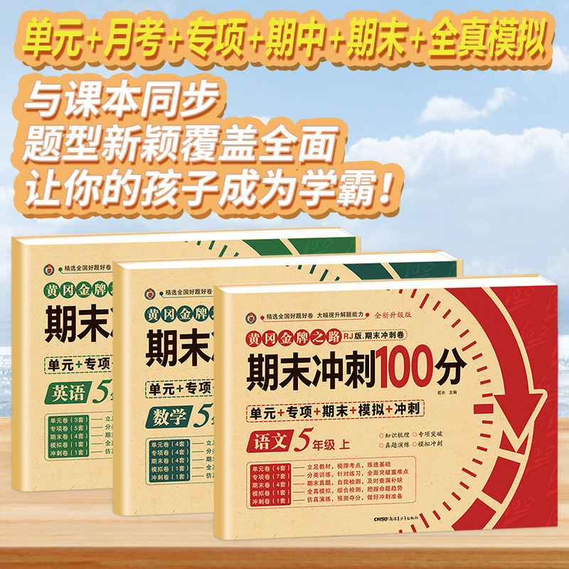 《期末冲刺100分》五年级上册语文、数学、英语试卷测试卷全套,专为小学五年级学生设计,紧扣人教版教材,涵盖单元、期中、期末及模拟考试内容。试卷题型全面,难度适中,注重基础知识巩固与综合能力训练,帮助学生系统梳理知识点,提升应试技巧。每科均配有专项训练和同步练习,强化重点难点,查漏补缺。试卷结构清晰,贴近真实考试形式,适合日常练习、阶段自测和总复习使用。通过反复练习,学生能有效提高学习效率,增强信心,轻松应对期末考试,冲刺满分目标。是家长辅导、学生自学和教师检测的理想教辅资料。