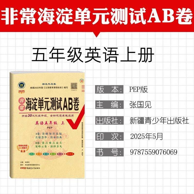 2025秋《非常海淀单元测试AB卷》专为小学一至六年级学生设计,涵盖语文、数学、英语三科,分上下册,同步人教版、湘教版教材。试卷结构科学,设A卷基础巩固、B卷能力提升,全面覆盖单元知识点、重点难点与常考考点。每册包含单元测试、期中、期末模拟及总复习卷,题型新颖,贴近考试实际,帮助学生夯实基础、突破难点。精选典型例题,强化综合运用能力,是学生日常练习、阶段检测和考前复习的理想教辅材料,助力提升学业成绩,轻松应对各类考试。