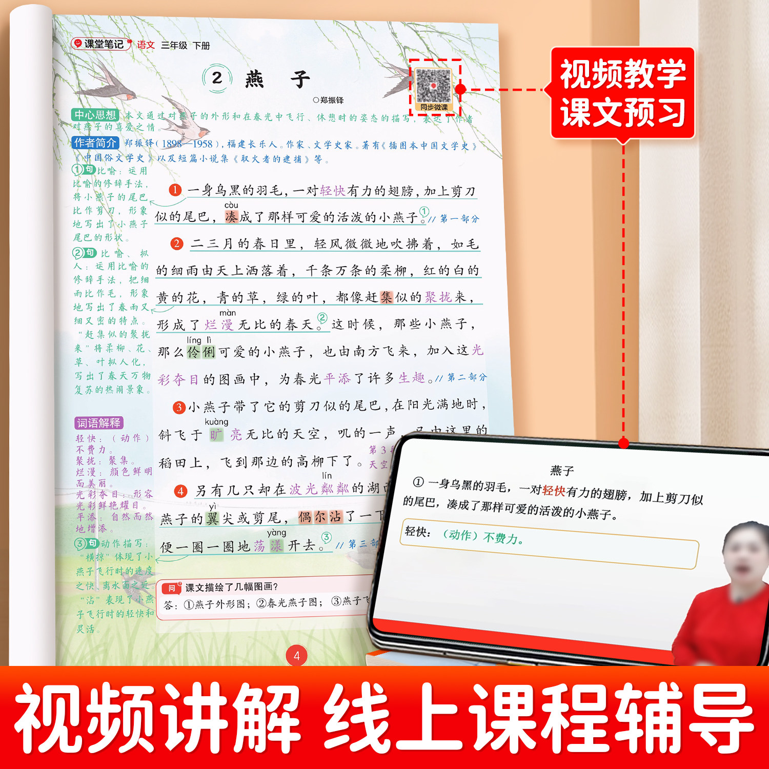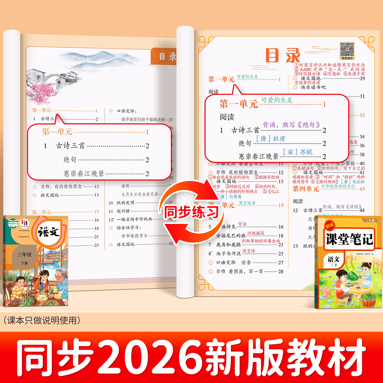 天猫2026年新版三年级下册课堂笔记语文数学英语人教版小学课本同步下册教材笔记六下外研随堂黄冈学霸本课前原文全讲解预习资料辅导书
