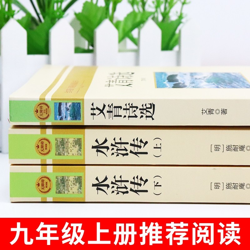 天艾青诗选和水浒传人民教育出版社人民文学出版社九年级上册正版原著完整版唐诗三百首简爱儒林外史人教版语文配套名著课外阅读书籍