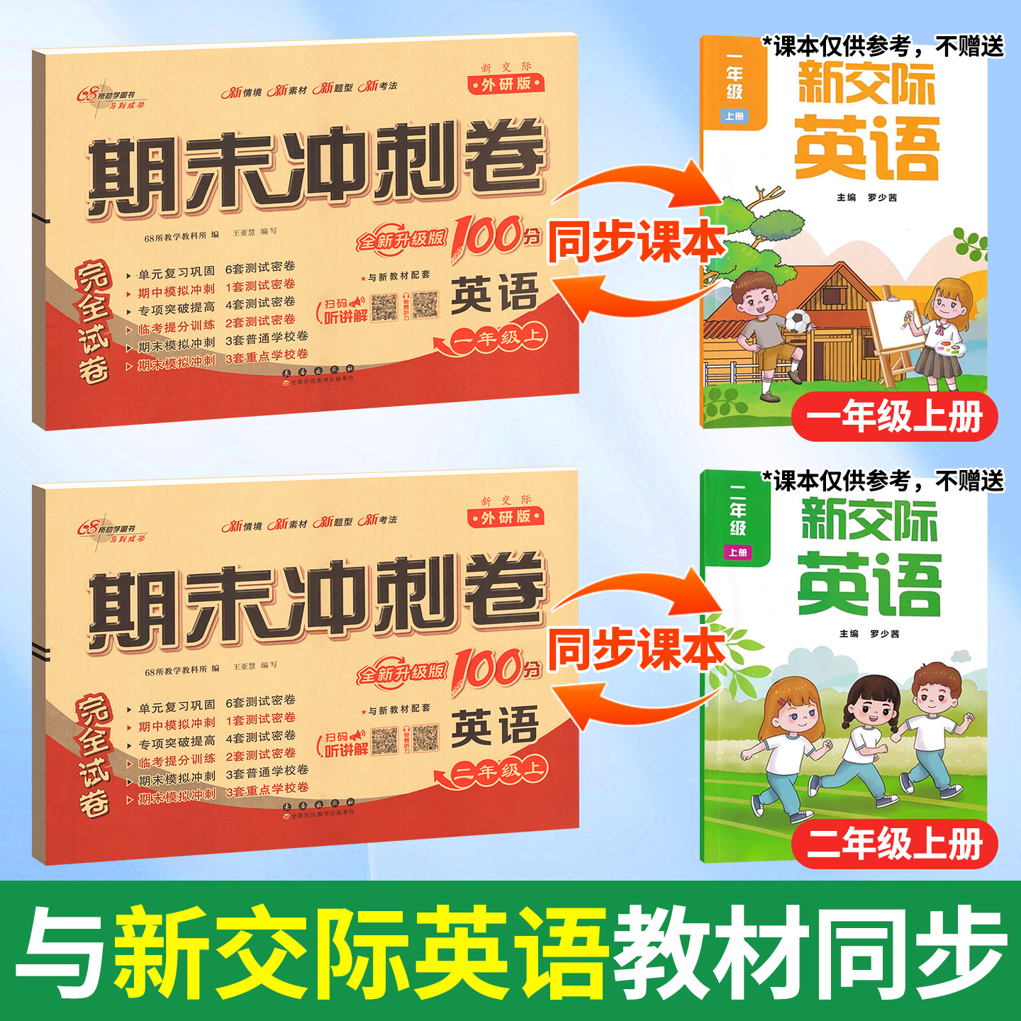 《新交际英语一年级二年级上册外研版试卷测试卷全套》专为2025年秋季小学一、二年级学生设计,紧扣外研版教材内容,涵盖单元、期中、期末及模拟考试真题,全面检测学习成果。试卷题型丰富,包含听力、词汇、句型与情景交际等模块,同步配套听力训练,提升学生听说读写综合能力。每套试题难度适中,贴近教学实际,帮助学生巩固基础知识,查漏补缺。期末冲刺100分系列注重实战演练,助力学生高效复习,轻松应对考试,是家长辅导、老师检测和学生自测的理想选择,助力孩子稳步提升英语水平。