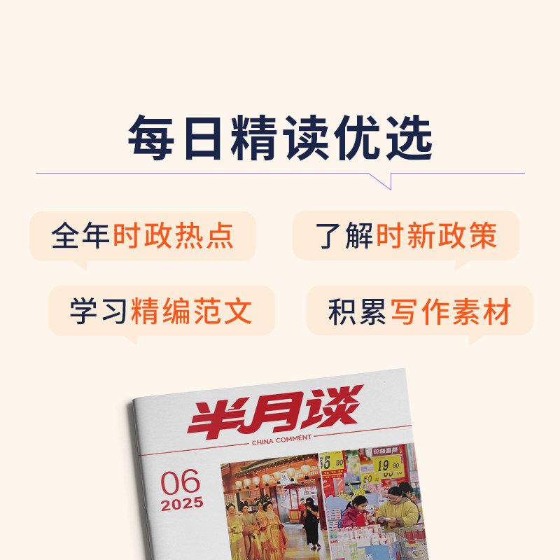 《半月谈》2025年公开版(1-24期)是备考国家及省级公务员考试的重要时政素材来源。该期刊聚焦时事政治、理论热点与社会焦点,内容权威、观点鲜明,涵盖乡村振兴、科技创新、基层治理、生态文明等申论高频主题,提供丰富案例与政策解析,助力考生积累写作素材、提升理论素养。作为公开版内部期刊,其语言风格贴近申论要求,兼具思想性与实用性,是公考学子系统掌握时政动态、深化政策理解、打磨申论表达的优质读物。定期研读可有效增强答题深度与政治敏锐度,为笔试与面试打下坚实基础。