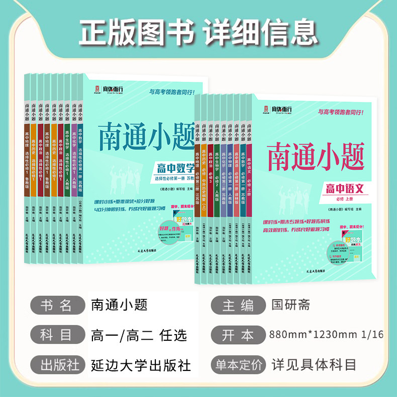 2026新教材版《南通小题》系列教辅,专为江苏高一学生打造,紧扣人教版、译林版新教材体系,涵盖语文、数学、英语、物理、化学、政治、历史、地理、生物九大学科,配套必修1至必修4上下册内容。本书以“小题精练、夯实基础”为核心理念,精选典型题型,强化知识点巩固与能力训练,契合江苏高考命题趋势。题目设计分层递进,注重思维拓展与实战应用,配有详细解析,助力学生高效自主学习。作为南通地区权威考辅资料,本书融合一线教学经验,是高一学生同步学习与阶段复习的理想选择,助力夯实学科基础,稳步提升成绩。